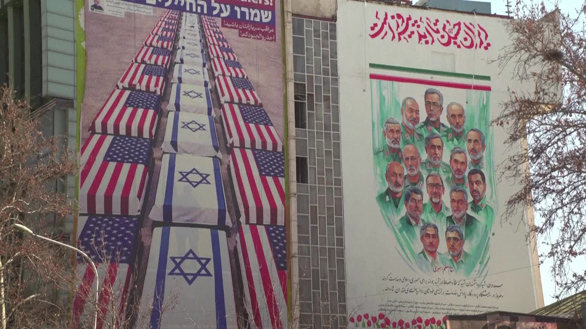بر روی این تابلوها، تصاویر تابوتهایی پوشیده از پرچمهای آمریکا و اسرائیل، همراه با تصاویر شهدای اخیر ایران در حملات رژیم صهیونیستی و عبارت «از سربازانتان بترسید» به چشم میخورد. این نمایش بصری، همزمان با تأکید مقامات ایرانی بر حق مشروع این کشور در دفاع از حاکمیت و امنیت ملی خود صورت گرفته است.